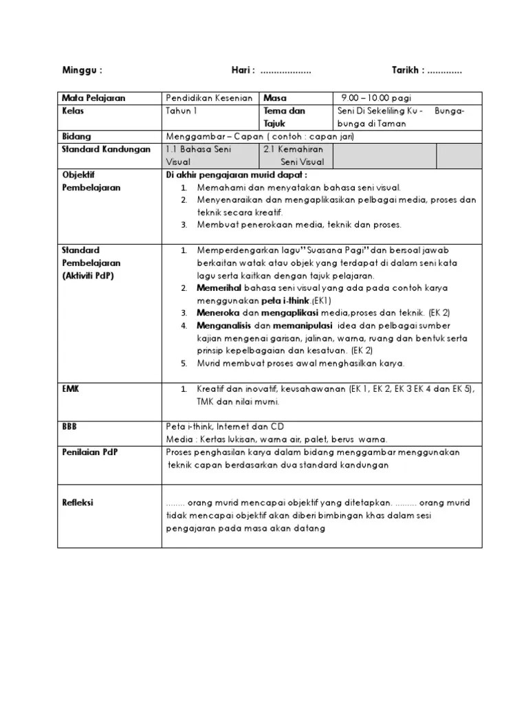Koleksi rancangan pengajaran harian rph pendidikan kesenian untuk kegunaan guru bagi merancang pdp dengan baik. Rph psv tahun 1 m10 pdf pendidikan seni visual pak 21 sekolah rendah kesenian rosemina tajudin (pulaupisang 65) profile pinterest 2021.